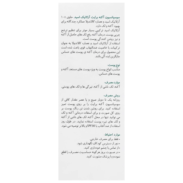 فرمولاسیون دوگانه: حاوی آزلائیک اسید 5% و سالیسیلیک اسید 2% برای اثرگذاری حداکثری.