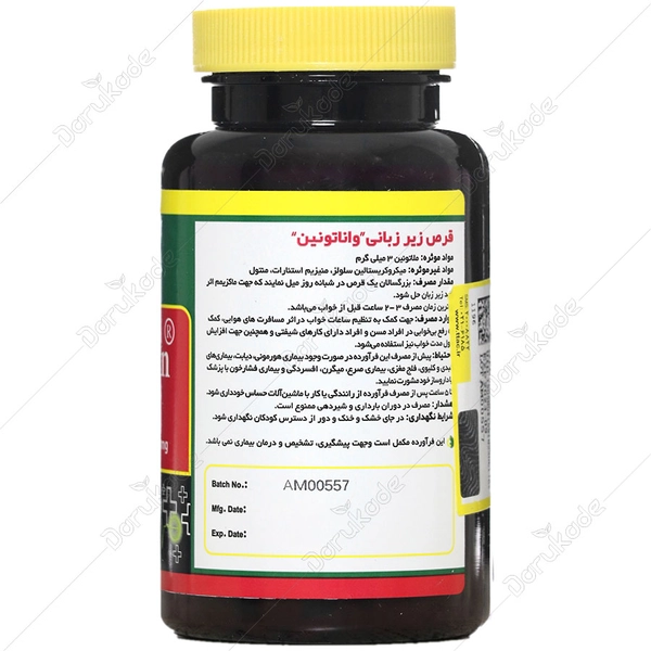 قرص Vanatonin یک مکمل غذایی است و جهت تشخیص، پیشگیری یا درمان بیماریها نمیباشد.