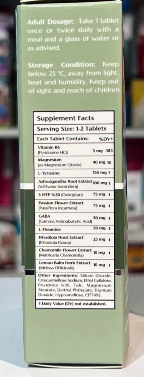 فرمولاسیون پیشرفته: حاوی ۸ ترکیب موثر از جمله ۵-HTP، ال-تینین و منیزیم.