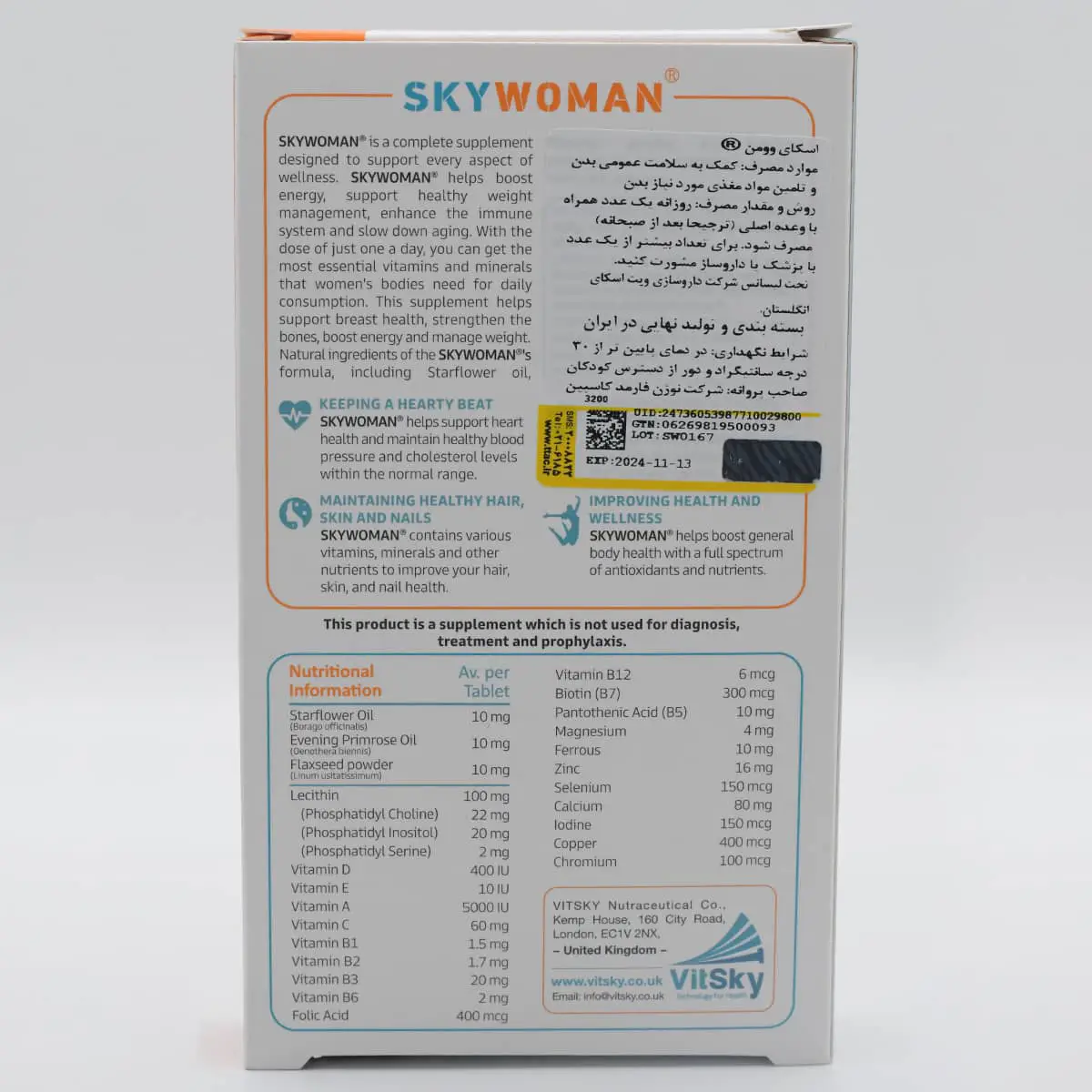 سلامت و شادابی بانوان، نیازمند توجه به نیازهای تغذیهای منحصر به فرد آنها در مراحل مختلف زندگی است. قرص اسکای وومن (Sky Woman) یک مولتی ویتامین تخصصی بانوان است که با فرمولاسیونی غنی از ویتامینها، مواد معدنی و عصارههای گیاهی، برای حمایت کامل از سلامت، انرژی و زیبایی زنان طراحی شده است. خرید قرص اسکای وومن در تبریز از داروخانه آنلاین سودافارما، انتخابی هوشمندانه برای بانوانی است که به دنبال بهترینها برای خود هستند.
